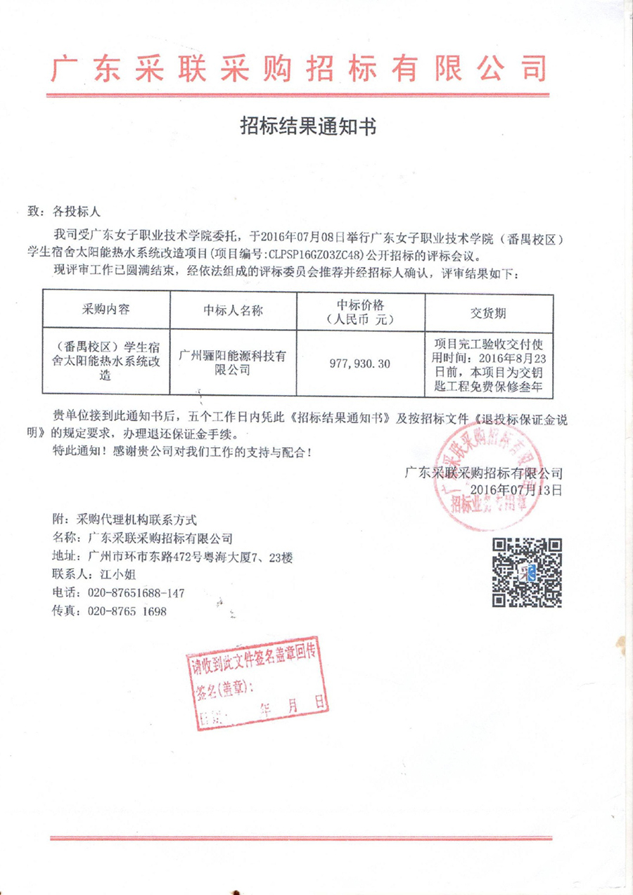 廣東女子職業(yè)技術(shù)學院學生宿舍太陽能熱水系統(tǒng)改造項目